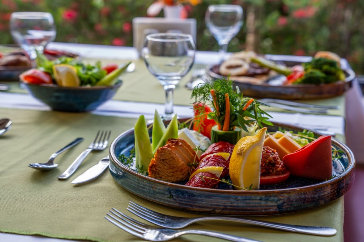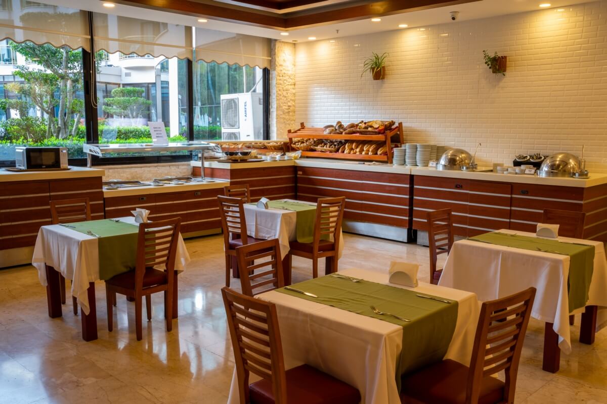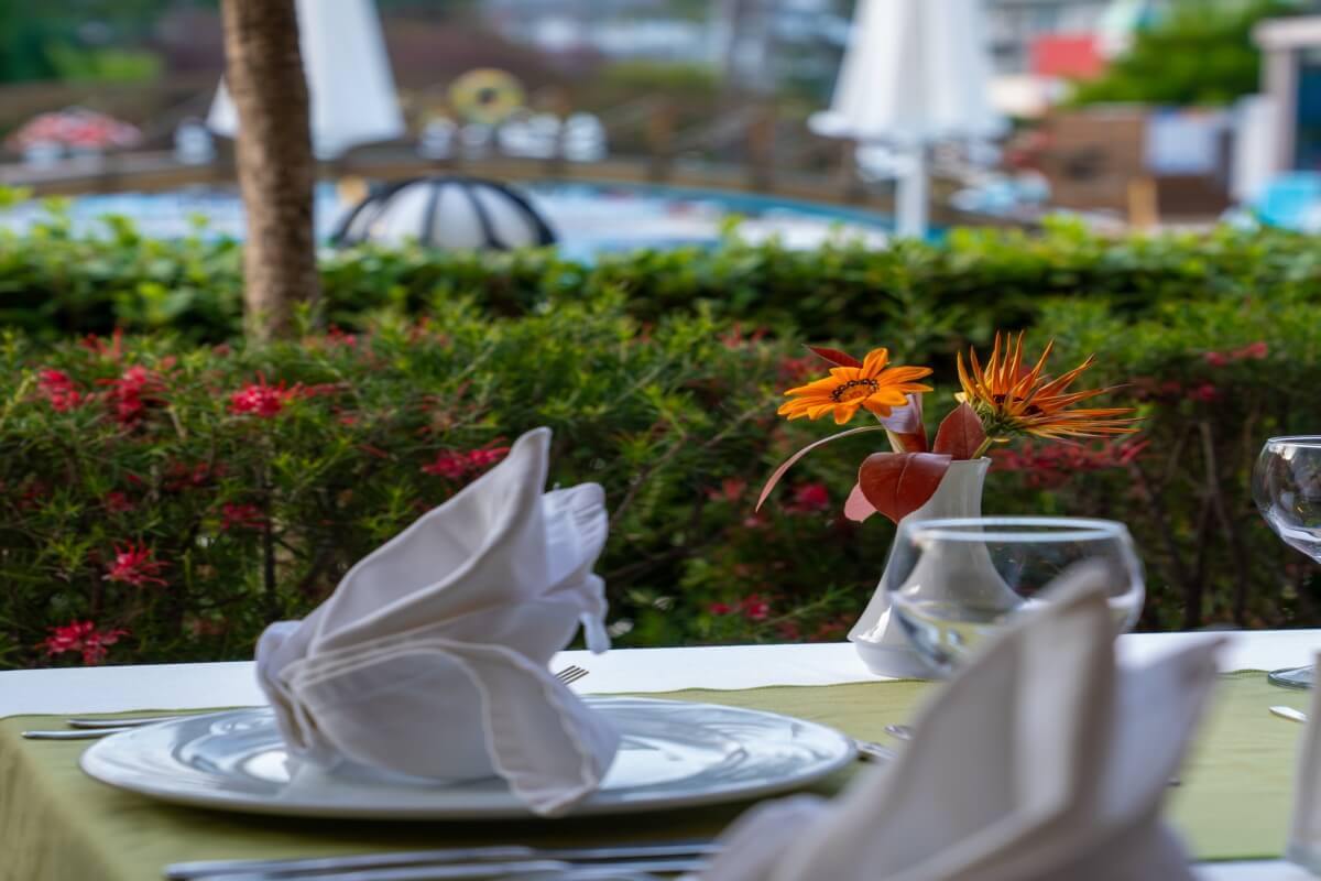 Sabah kahvaltısı, öğle ve akşam yemekleri açık büfe olup tesisin belirlemiş olduğu markalar dahilinde 10:00 ile 00:00 saatleri arasında yerli alkollü ve alkolsüz içecekler ücretsizdir. Taze sıkılmış meyve suları, tüm yabancı ve import içkiler ücretlidir.
